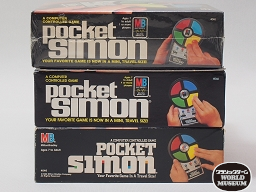上から順に、1980年版、1987年版、1989年版のパッケージ側面。「POCKET」の表記以外に、本体や手の向きもそれぞれ違う。