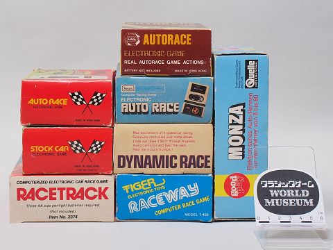 マテル社の『オートレース』を模倣した商品は、確認できているだけでも10種類ほど発売されている。ここに掲載したのはそのうちの8機種だが、じつはどれもマテル版のゲーム内容を完全には再現していない。具体的に書くと、トミー版『オートレース』をはじめとする6機種は、自車が一気に2段上へ移動してしまうため、マテル版よりもクリアタイムが大幅に短くなりやすい。それに対してシアーズ版『オートレース』と『ストックカー』は、自車が1段ずつ上へ移動するものの、敵車が画面内に1台しか現れず、マテル版と比べてスリリングさに劣る(マテル版は敵車が最大2台出現する)。