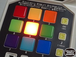 カラフルに光る9つのボタンが特徴。1から9のボタン番号は、左上から渦巻き状に配置されている。