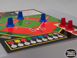 (8)の「野球ゲーム」では、付属のスタジアムシートに青いランナーのコマや赤いアウトカウントのコマを置いていく。