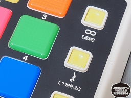 「∞」マークの付いた「連続」ボタン。このボタンで再生を始めた曲は、「ロボット」ボタンで停止させるまで何度も流れつづける。