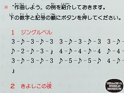 (2)の「作曲しよう」で入力した曲は、「連続」ボタンで再生すると繰り返し流れつづける。この機能を活用したのが発売元のタカトクトイスで、業界誌「トイジャーナル」の「クリスマスのメインはこれだ!!」という広告内に以下のようなメッセージを掲載した。