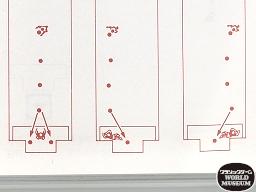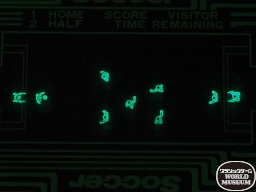 2人での対戦時における2P側のプレイ開始前の状態。1P側(ひとつ前の写真)と比べると、6人のディフェンスが反対側を向いているが、これはLEDゲーム機にはできない表現。また、ディフェンスの頭部の色も違う。